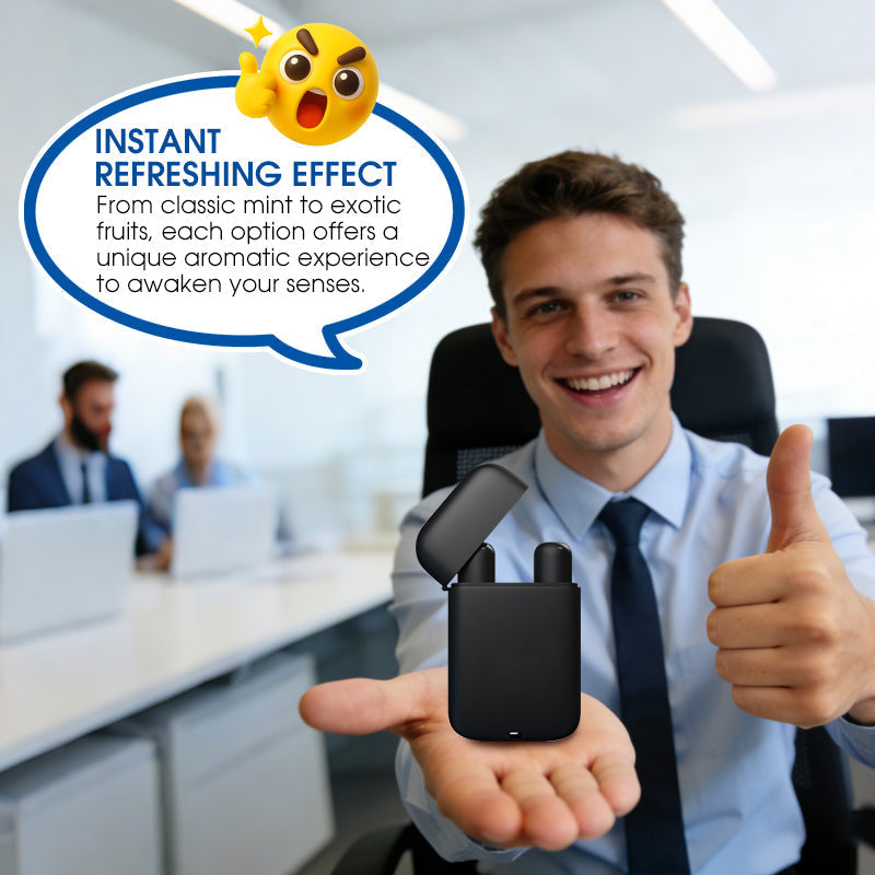 KONSTRUKCE S DVOJITOU TRYSKOU – Vdechujte současně oběma nosními dírkami a užijte si vyváženou a silnou vlnu osvěžení. Tato konstrukce maximalizuje pocit ochlazení, okamžitě pročistí vaši hlavu a smysly a zlepší vaši koncentraci a jasnost myšlení.